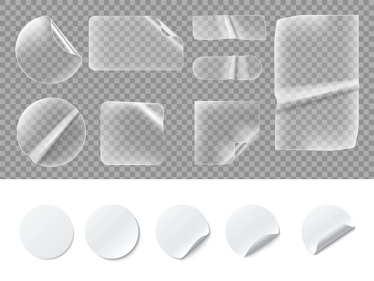 Wir drucken transparente (klare) oder weiße Yupo Tako Folie OHNE Kleber für mehrfaches Wiederverwenden.