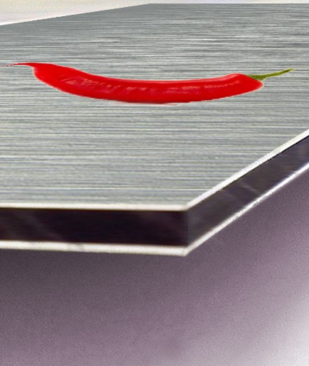 • leichtgewichtige Verbundplatte, Deckschichten Alu Silber gebürstet, gebrushed, mittlerer Kern aus Polyäthylen