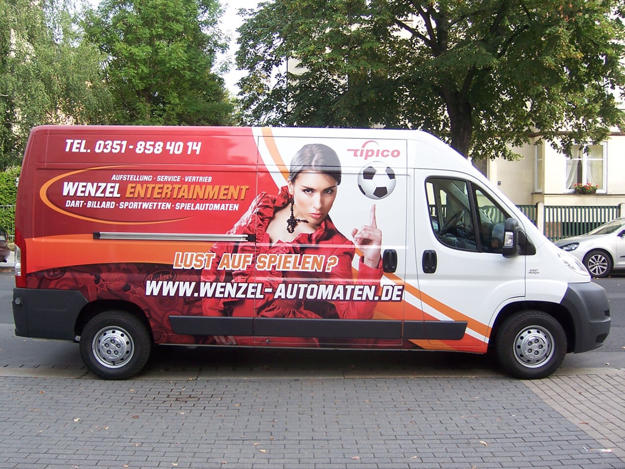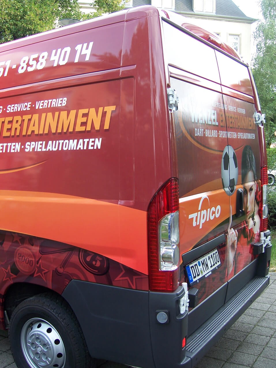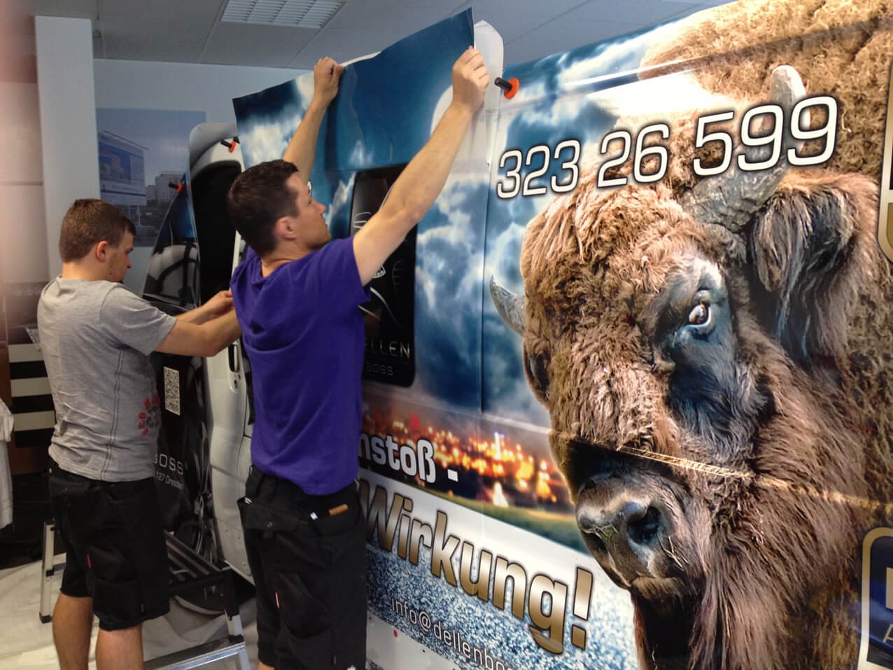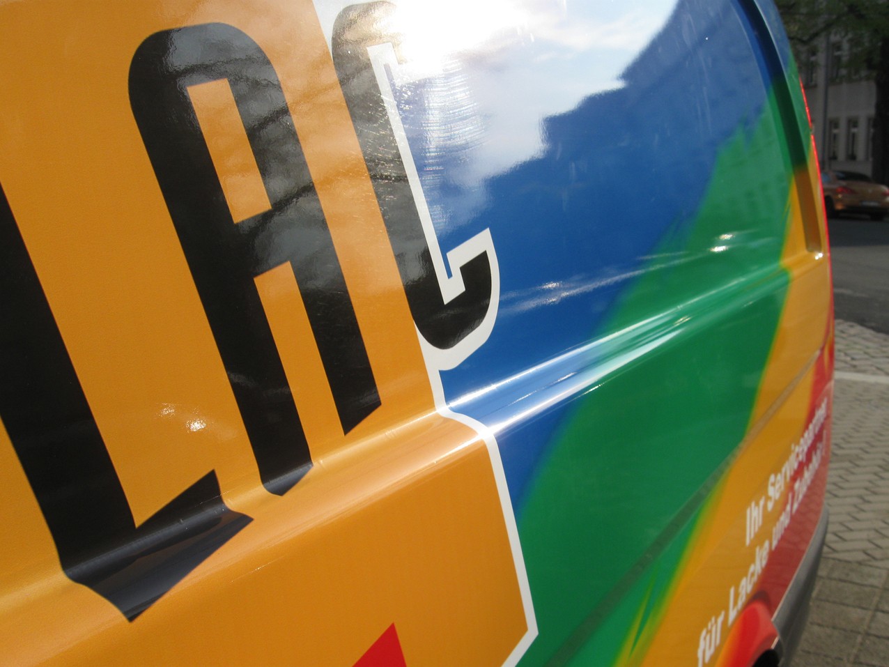 • Aufkleber auf Fahrzeugen mit sehr starke Wölbungen, Sicken, nahezu blasenfreie Verarbeitung durch Mikrokanäle