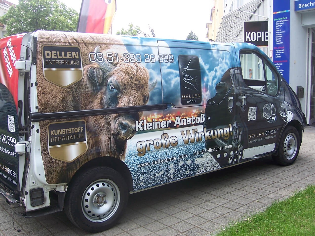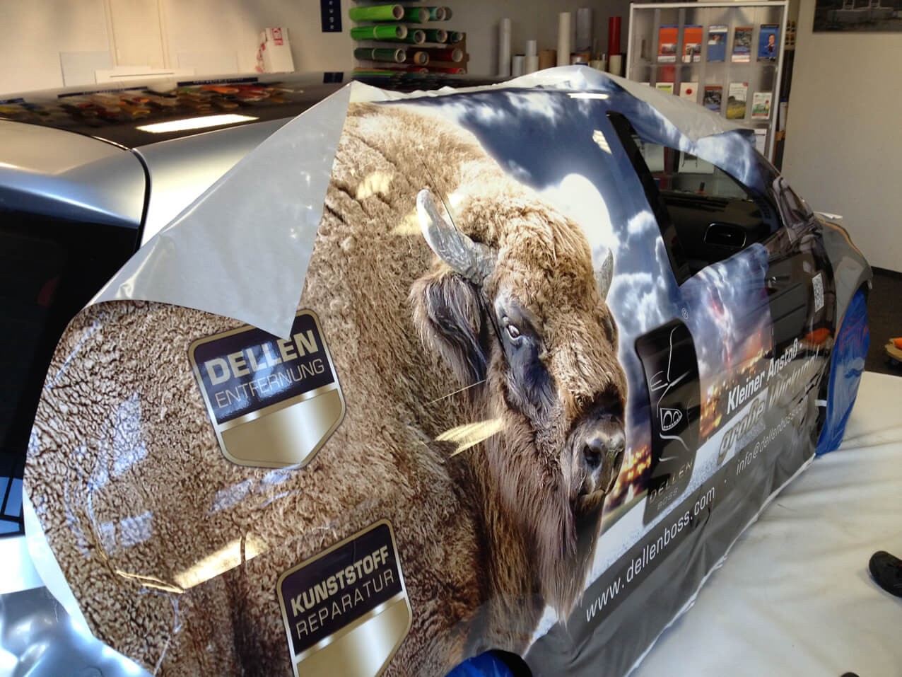 Foliendruck ---> längerfristige Anwendung für PKW mit starken Sicken, Wölbungen