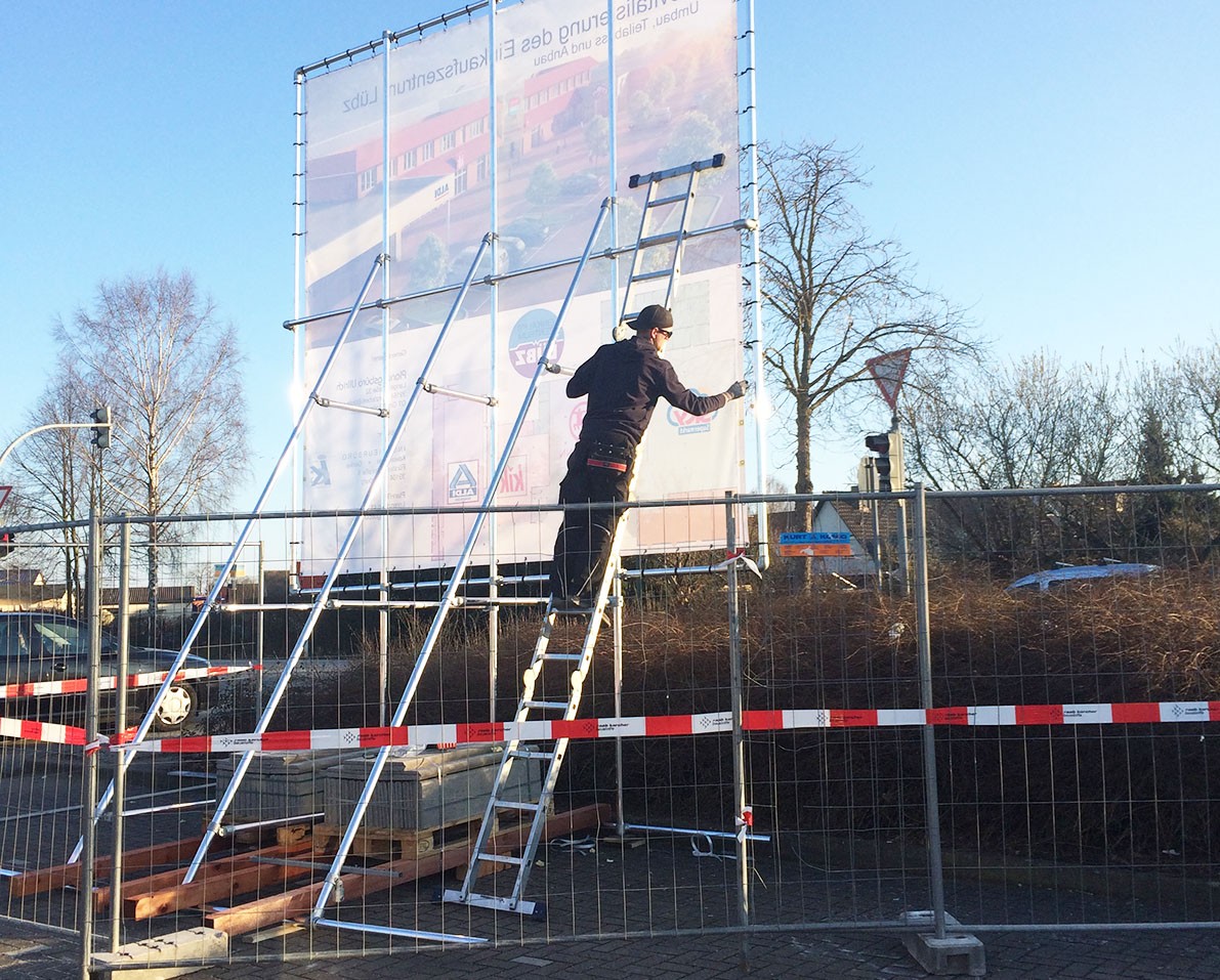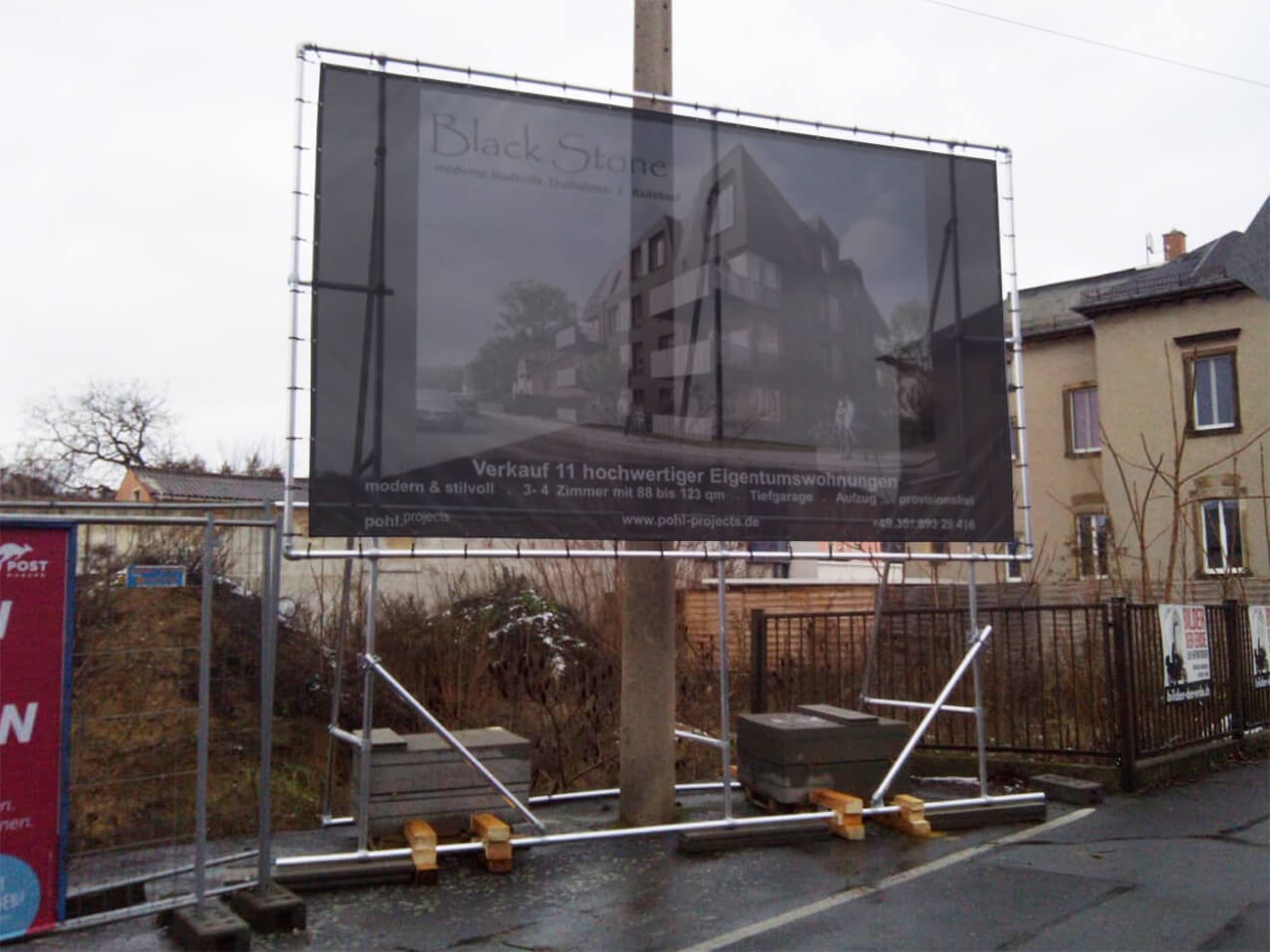 - damit können wir alle kreativen Möglichkeiten umsetzen, von Präsentationswänden für Messen, temporäre Bauschilder bis zur größten Plakatwand