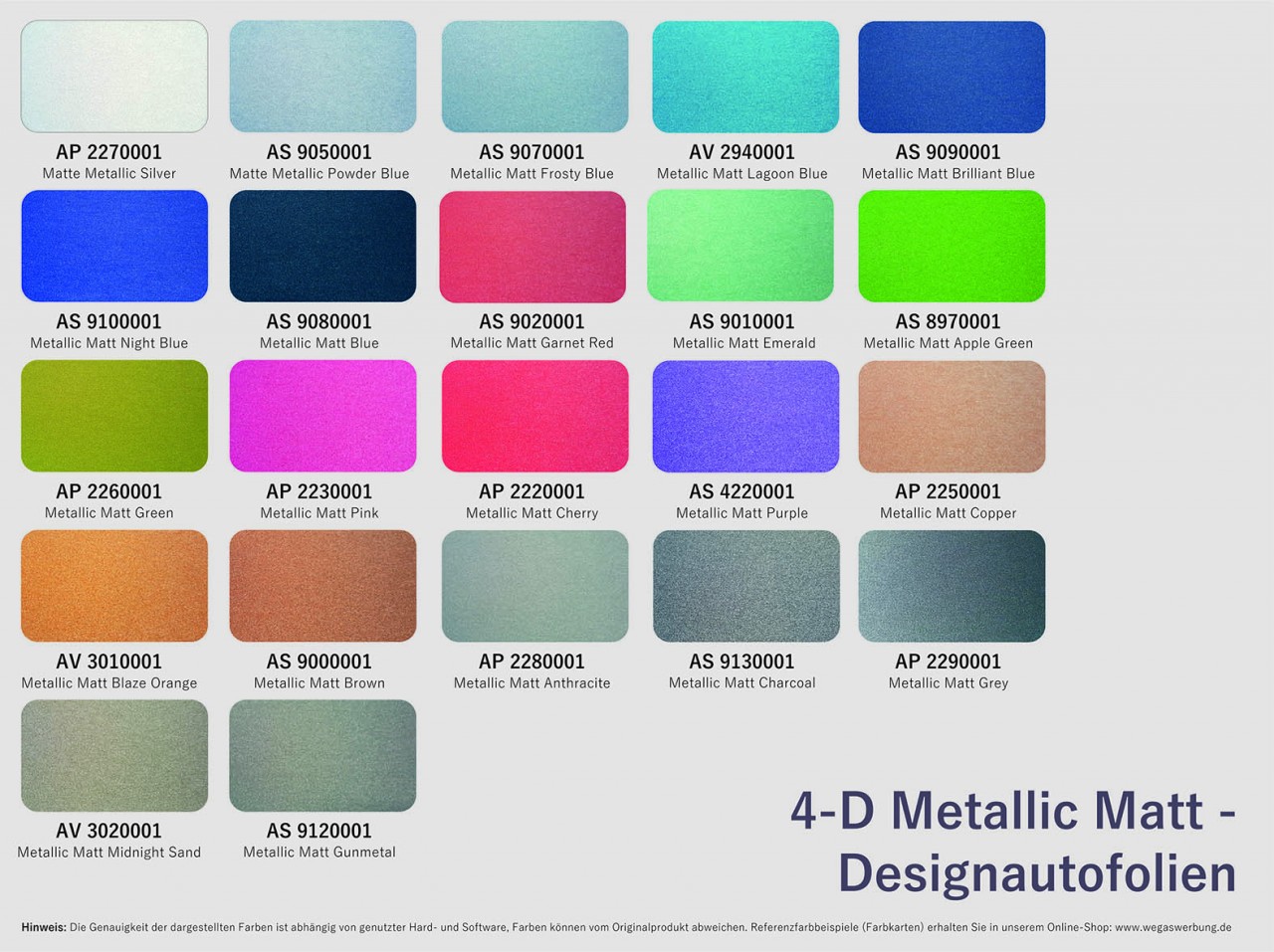 • farbige METALLIC MATT Klebefolien in 21 Farben JETZT möglich