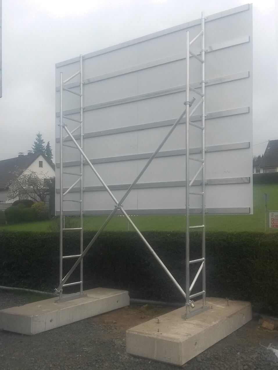 • Sie können von uns auch eine komplette Herstellung von Bauschilder, Bautafeln, Bauschildanlagen, Gestelle in Holz, Aluminium, feuerverzinkten Stahl erhalten