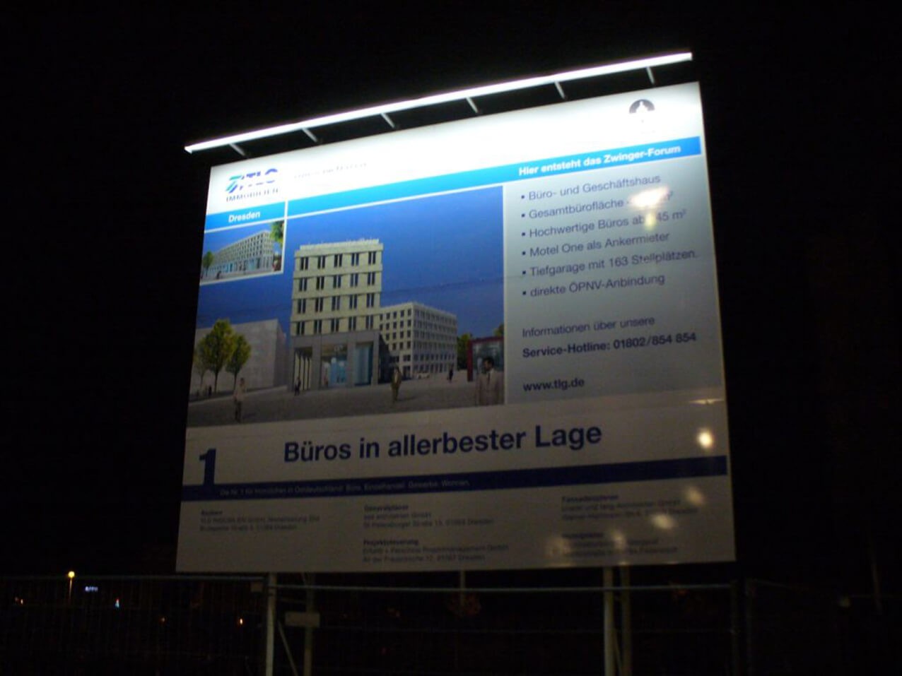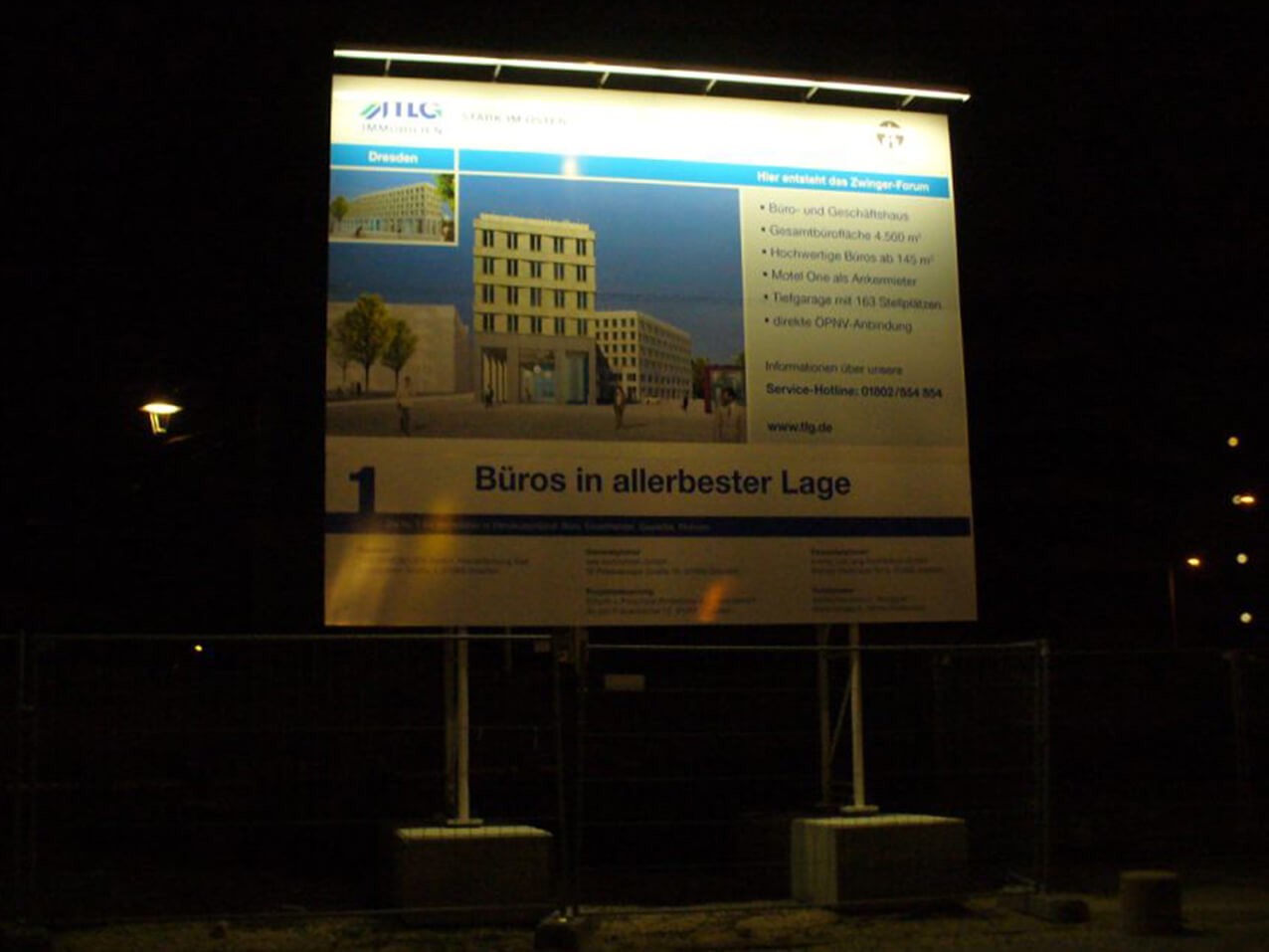 • die Bauschilder können Sie auch günstig mit LED Strahler, Leuchten beleuchtet erhalten