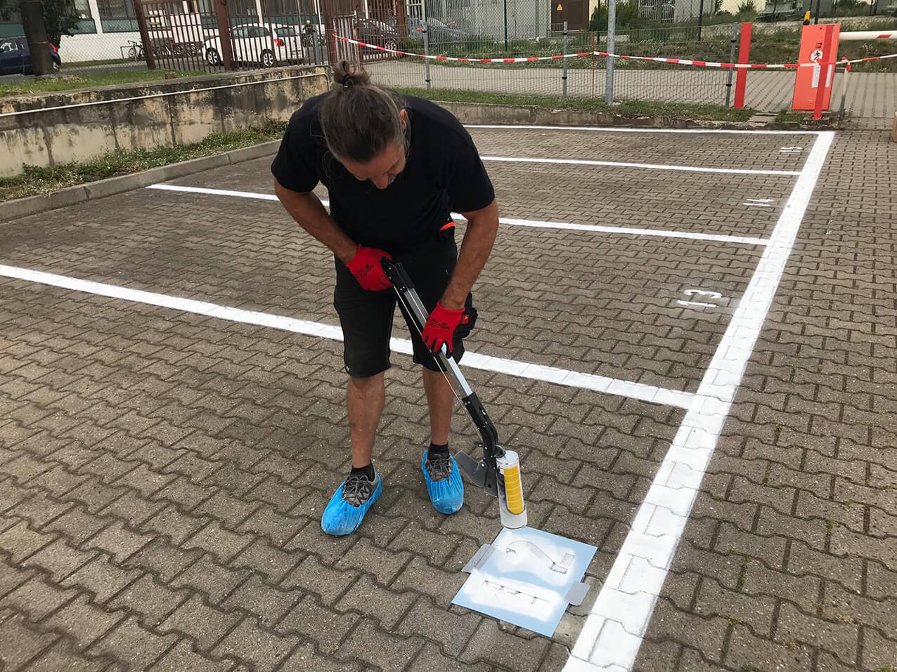 Einfache und schnelle Bodenmarkierung mit Sprühfarbe