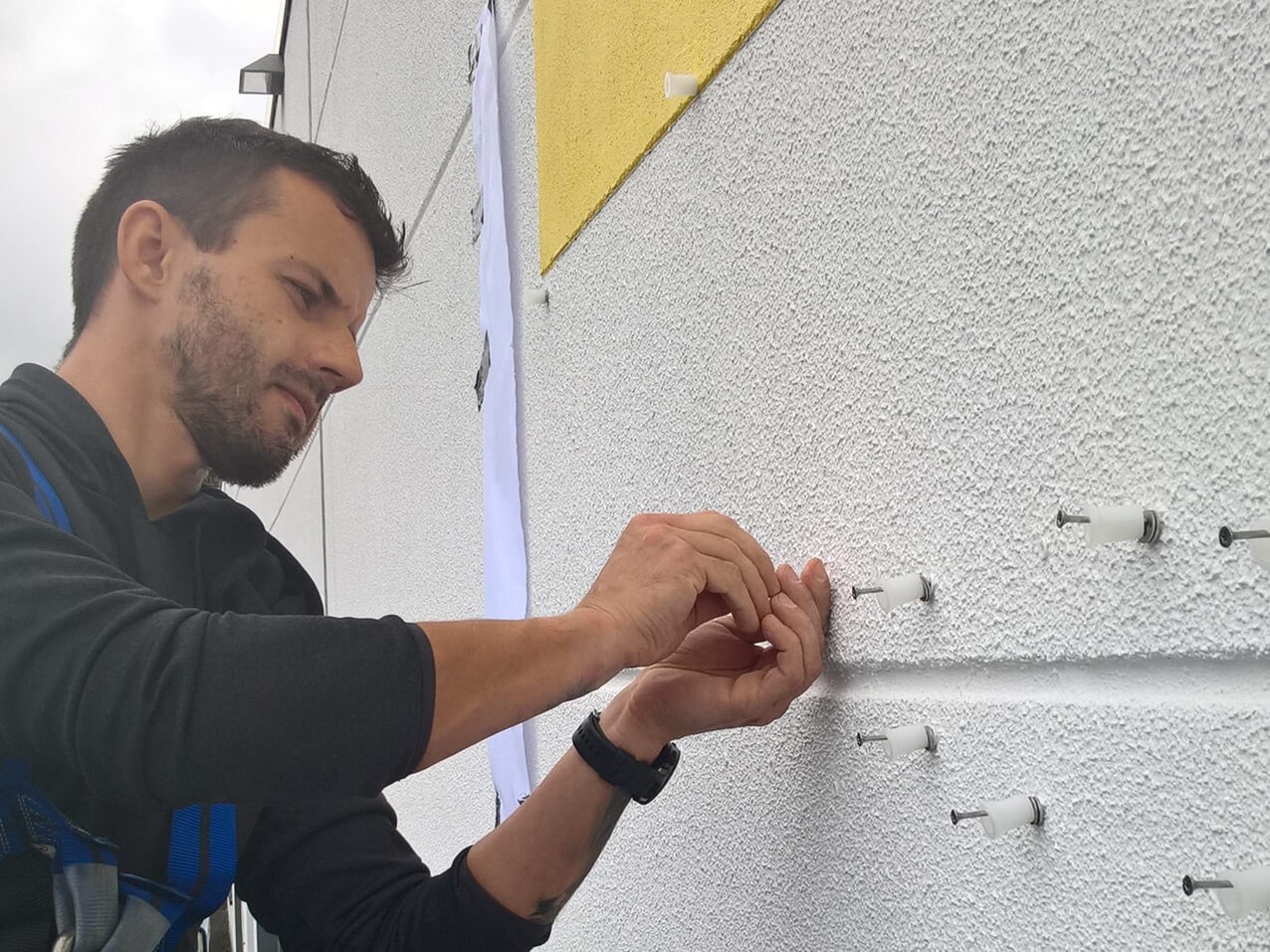 • Befestigung mit Wandabstandshalter (KLICK) für Innen und Aussen, oder Klebeband rückseitig möglich für Wandmontage Innen