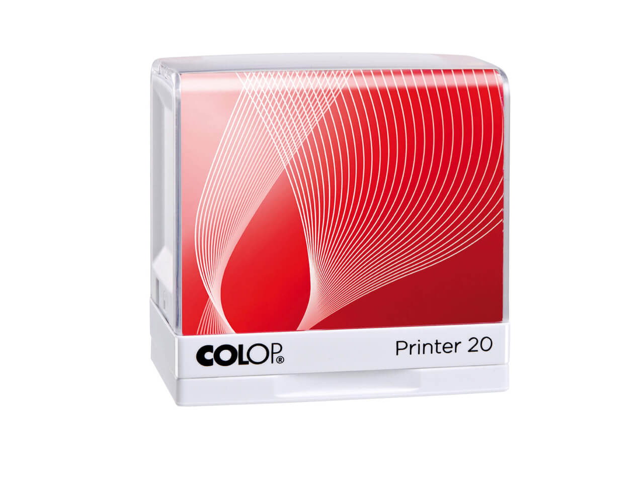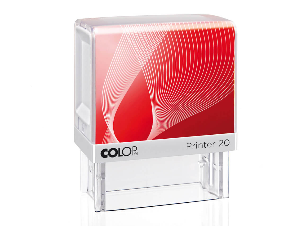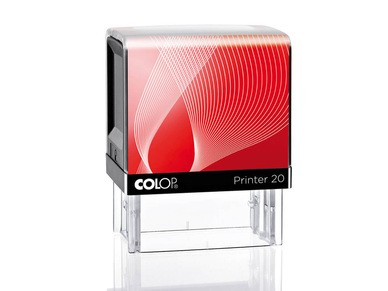 Der Selbstfärbestempel Printer 20 von COLOP stempelt gestochen scharfe Stempelabdrücke durch unser Laserverfahren. Sie können bis zu 4 Zeilen individuell mit ihren Namen, Adresse, Firmennamen, Logo, Motiv gestalten bzw. Ihre Datei schicken oder von uns gestalten lassen. Das transparente untere Gehäuse mit Sichtfenster ermöglicht das Stempelmotiv exakt zu positionieren. Das Stempelgehäuse ist extrem robust und garantiert eine sehr lange Lebensdauer.