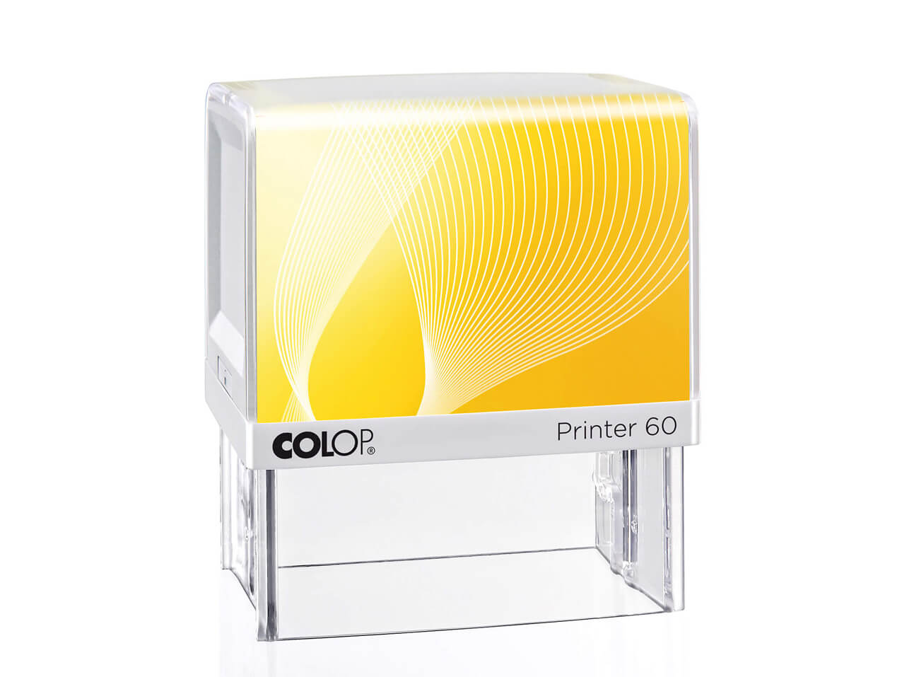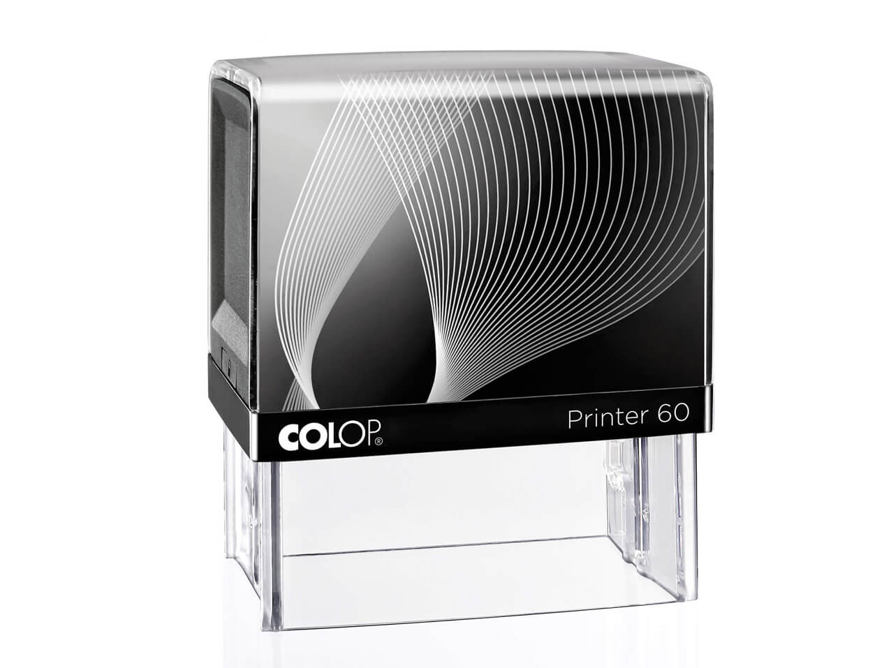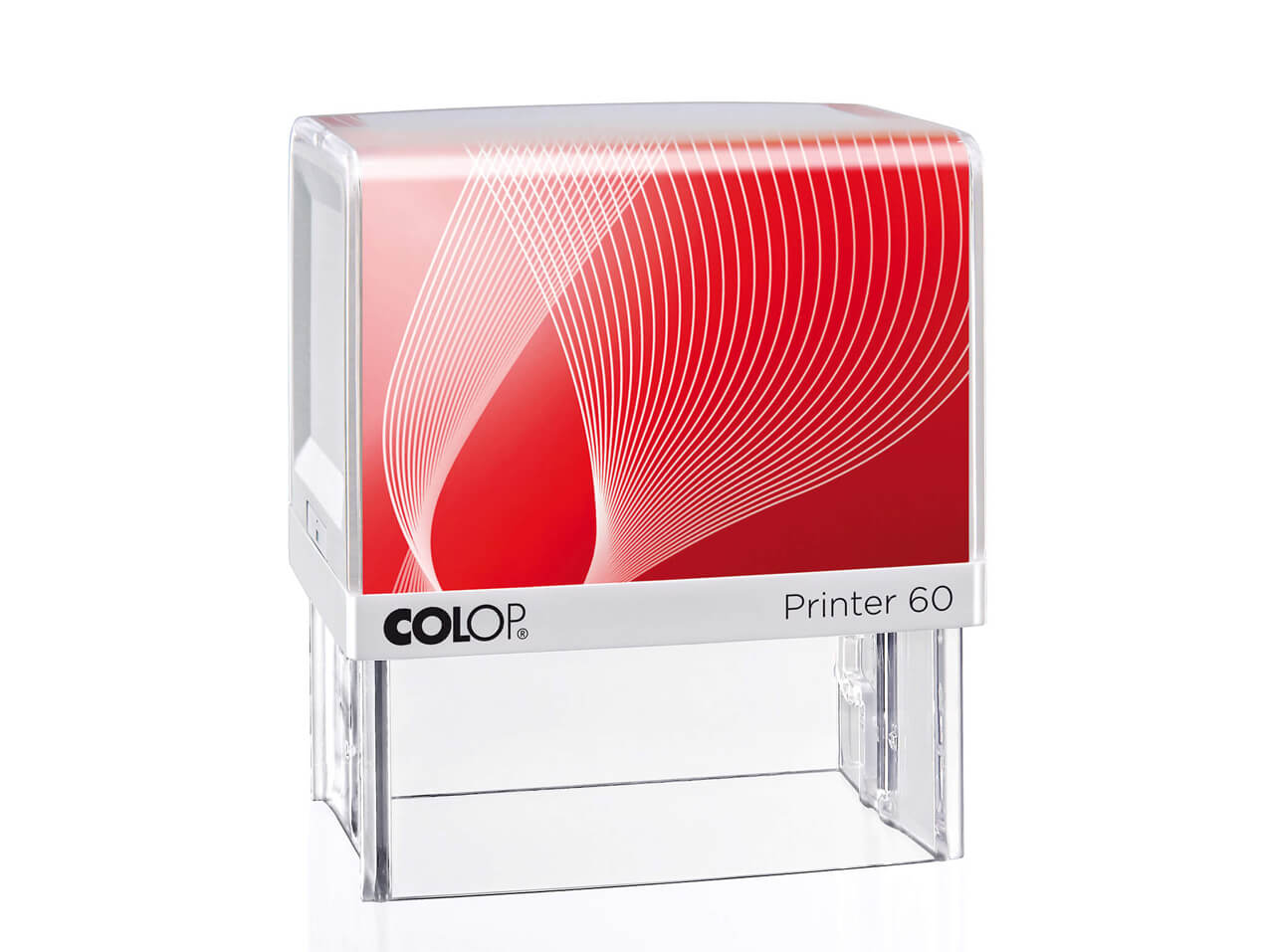 Der Selbstfärbestempel Printer 60 von COLOP stempelt gestochen scharfe Stempelabdrücke durch unser Laserverfahren. Sie können bis zu 8 Zeilen individuell mit ihren Namen, Adresse, Firmennamen, Logo, Motiv gestalten bzw. Ihre Datei schicken oder von uns gestalten lassen. Das transparente untere Gehäuse mit XXL-Sichtfenster ermöglicht das Stempelmotiv exakt zu positionieren. Das Stempelgehäuse ist extrem robust und garantiert eine sehr lange Lebensdauer.