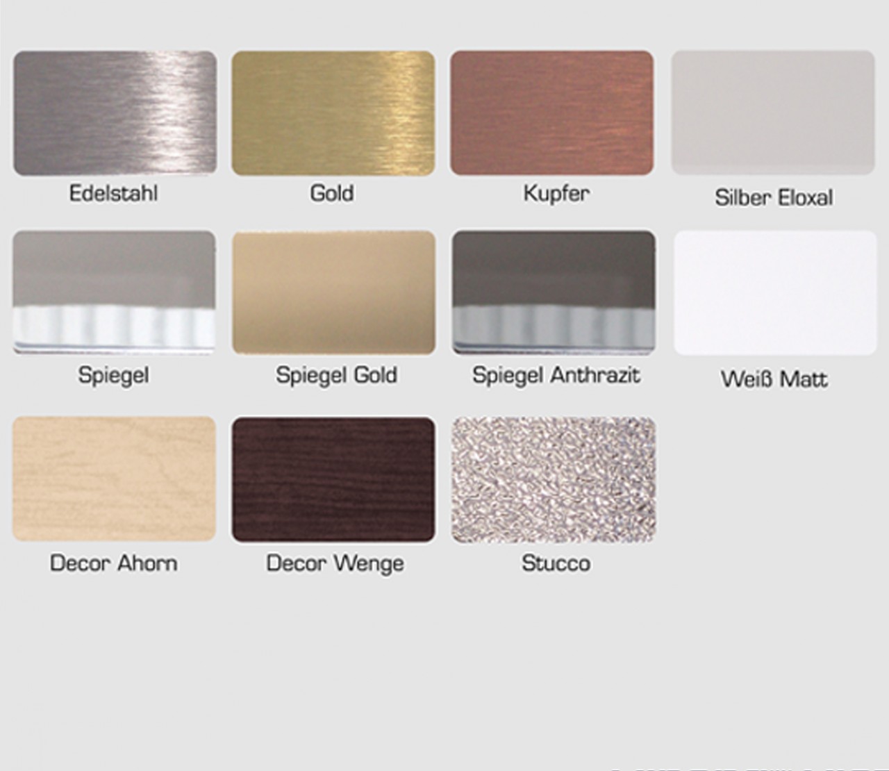 • beidseitig Aluminium 0,3 mm Deckblech, Vorderseite Edelstahl, Rückseite Walzmatt (nicht dekorativ)