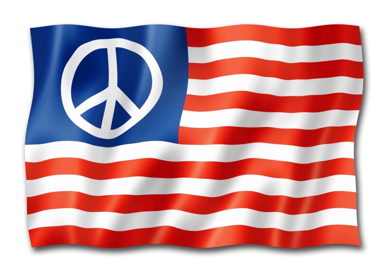 Fahne, Flagge USA Amerika Peace Frieden Logo, Friedenszeichen in allen Größen inkl Druck