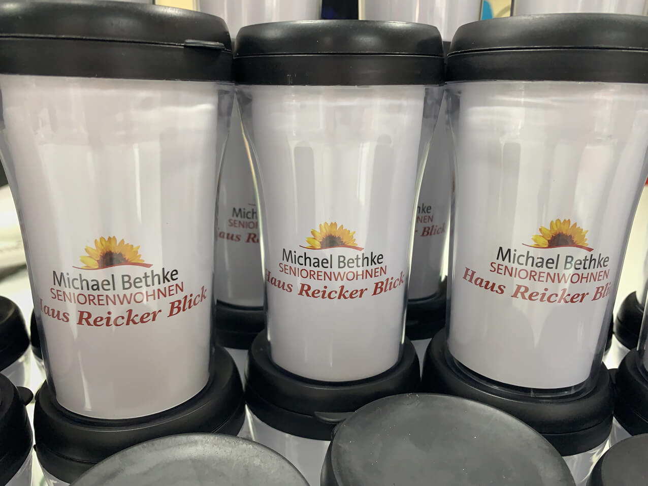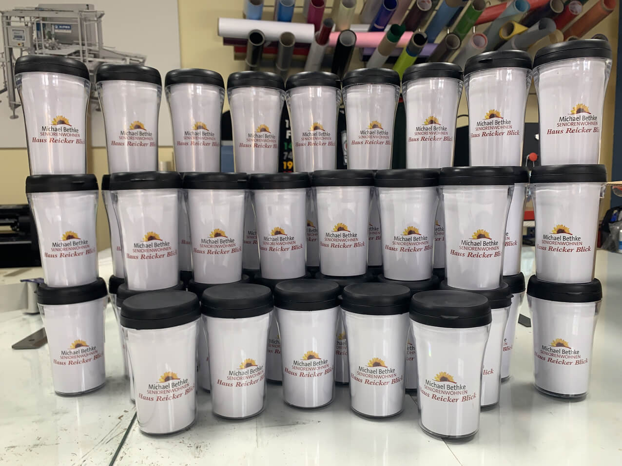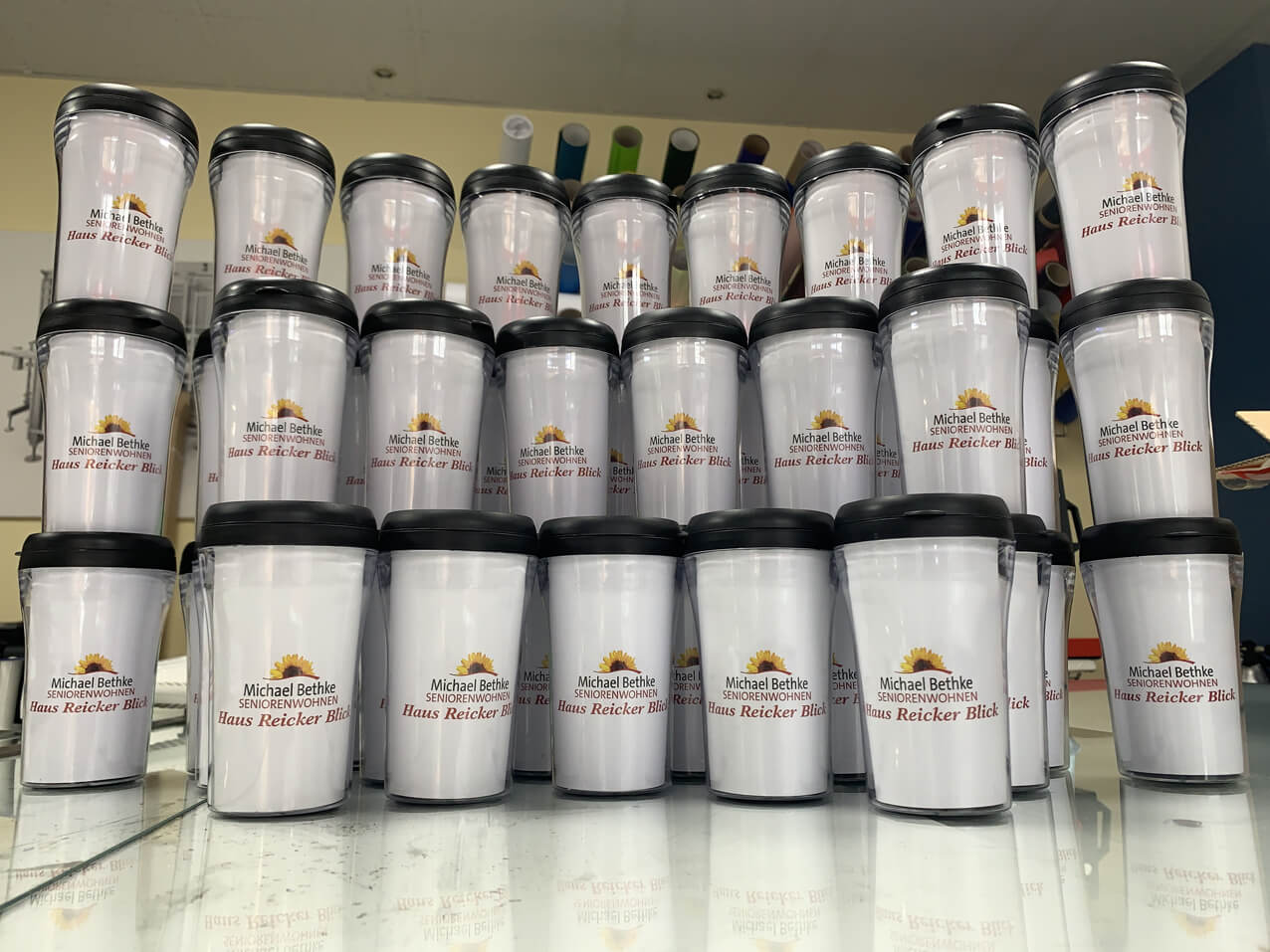 - Isolierbecher können mit dem gleichen Motiv oder jeder Becher mit anderem Motiv bedruckbar