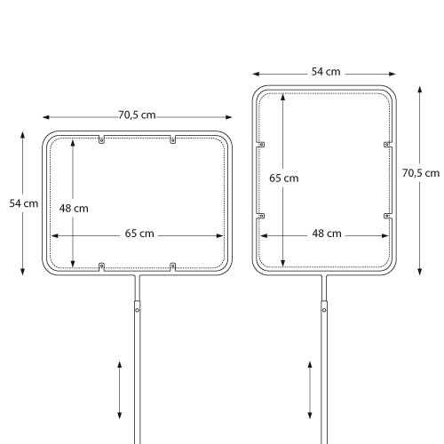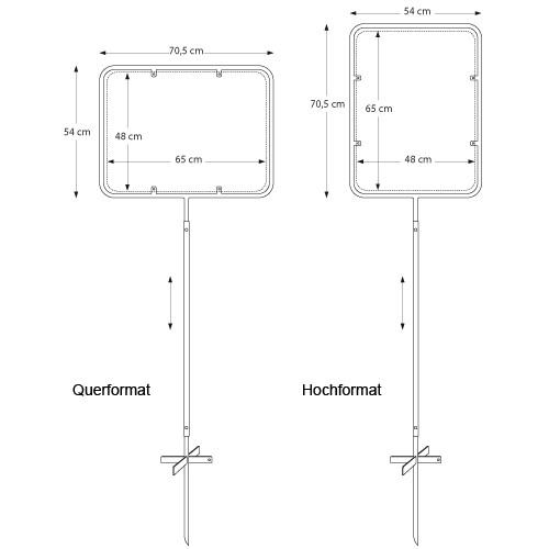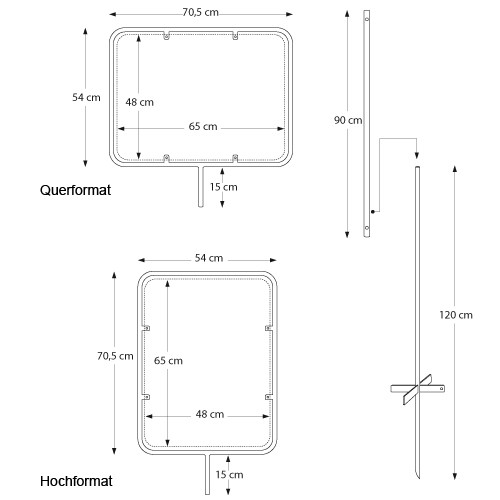 1. Gestell für Schild Hochformat: 65 x 48 cm, BxH)