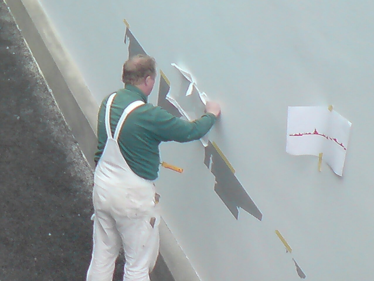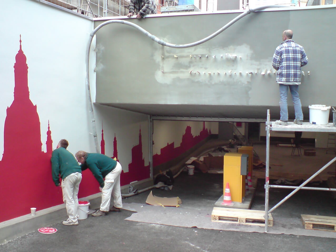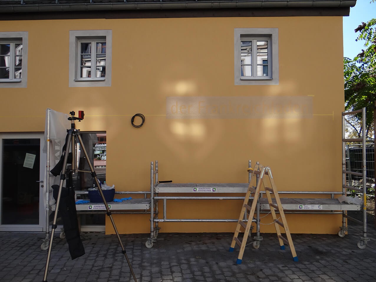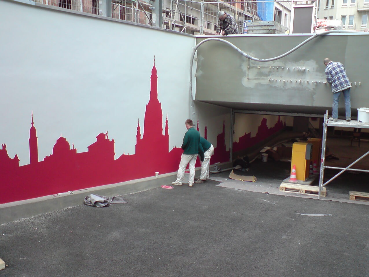 Lackier Schablone Klebe Folie; Klebeschablone geplottet, geschnitten, cut auf Beton Fassade Wand zum Ausmalen