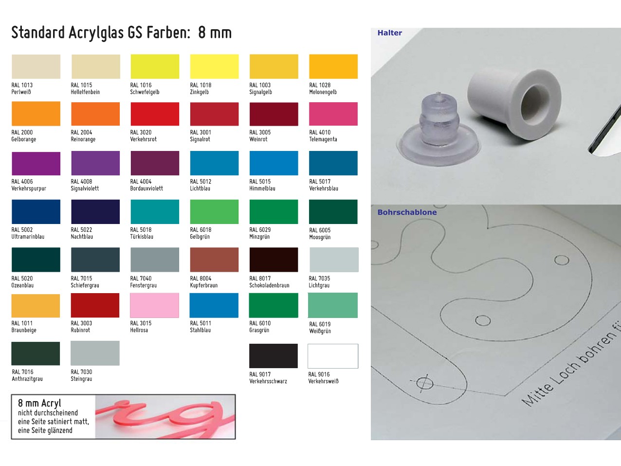 • ACRYL GS 8 mm, transparent klar durchscheinend, eine Seite satiniert oder eine Seite glänzend