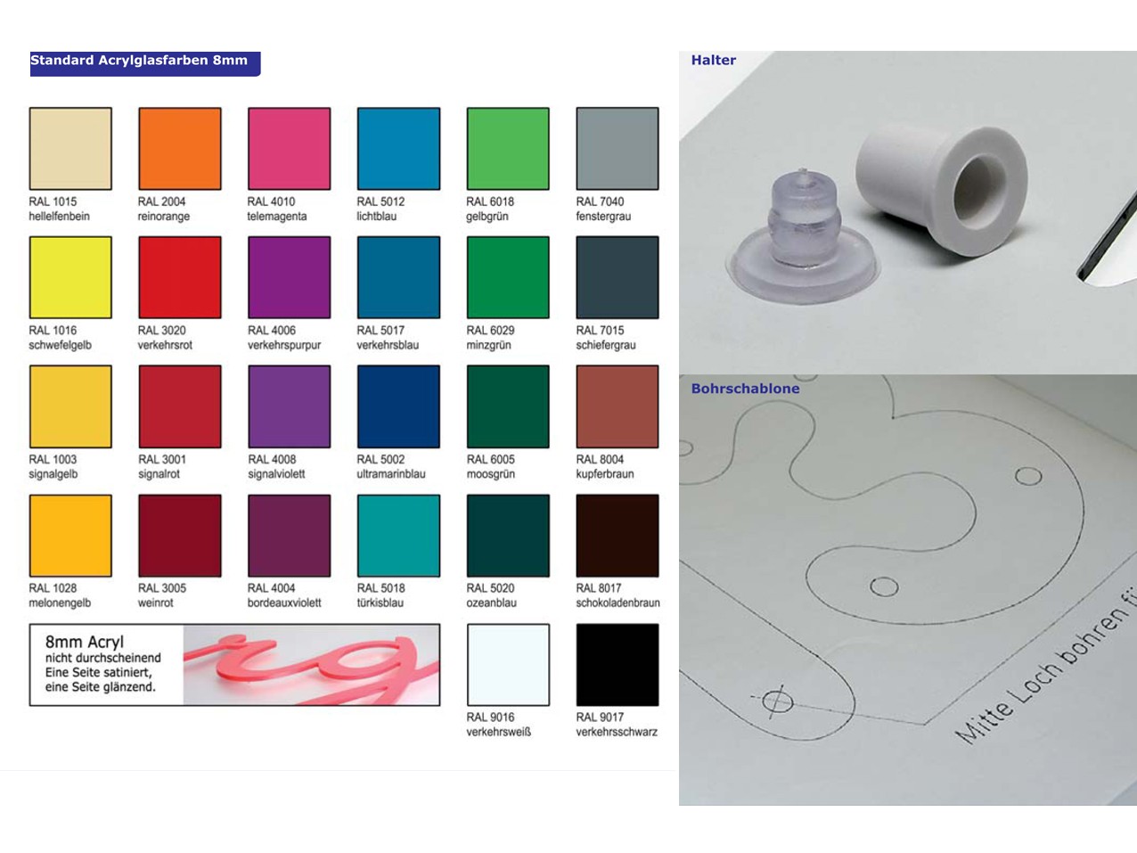 • Montagehilfe Positiv: Papierschablone gedruckt mit Außenkontur und Halterpositionen für die passgenaue Montage