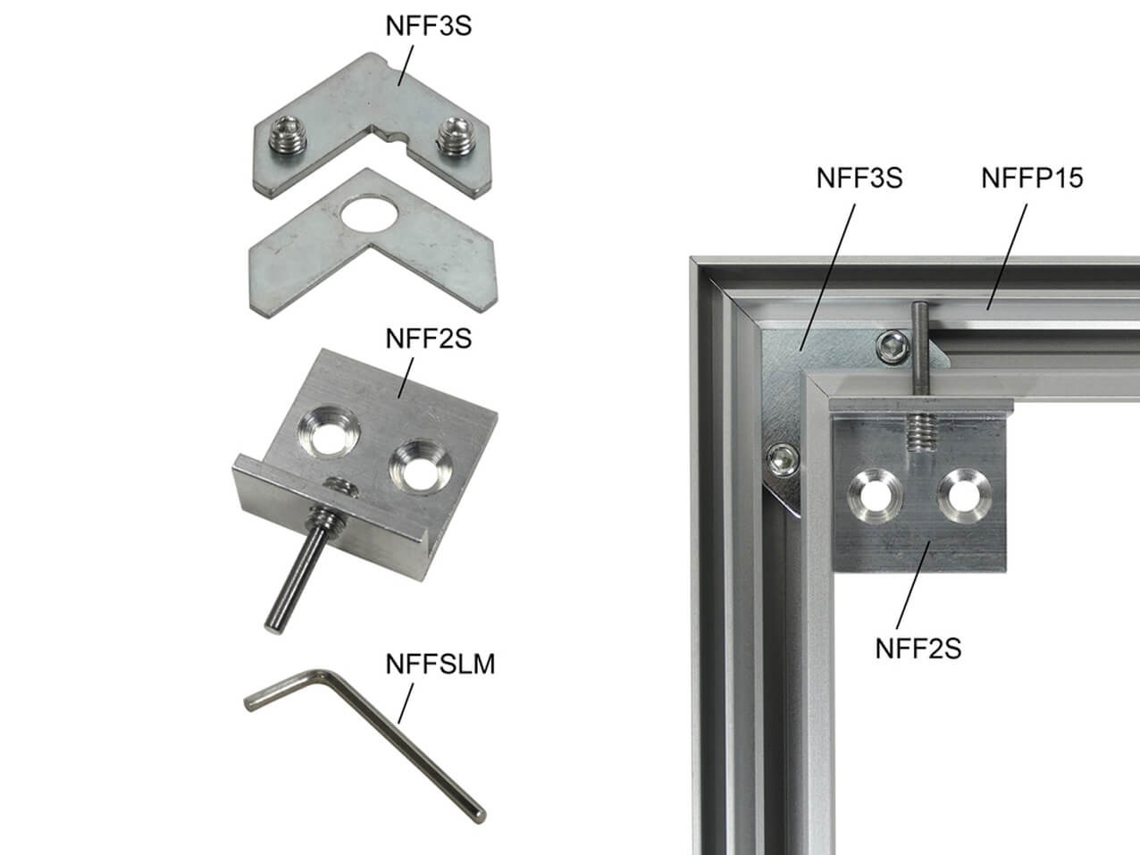 • Rahmenprofile, Set Eckverbinder, Wandhaken, Größere Profile über 2 m werden geteilt, inkl. Profilverbindern ausgeliefert
