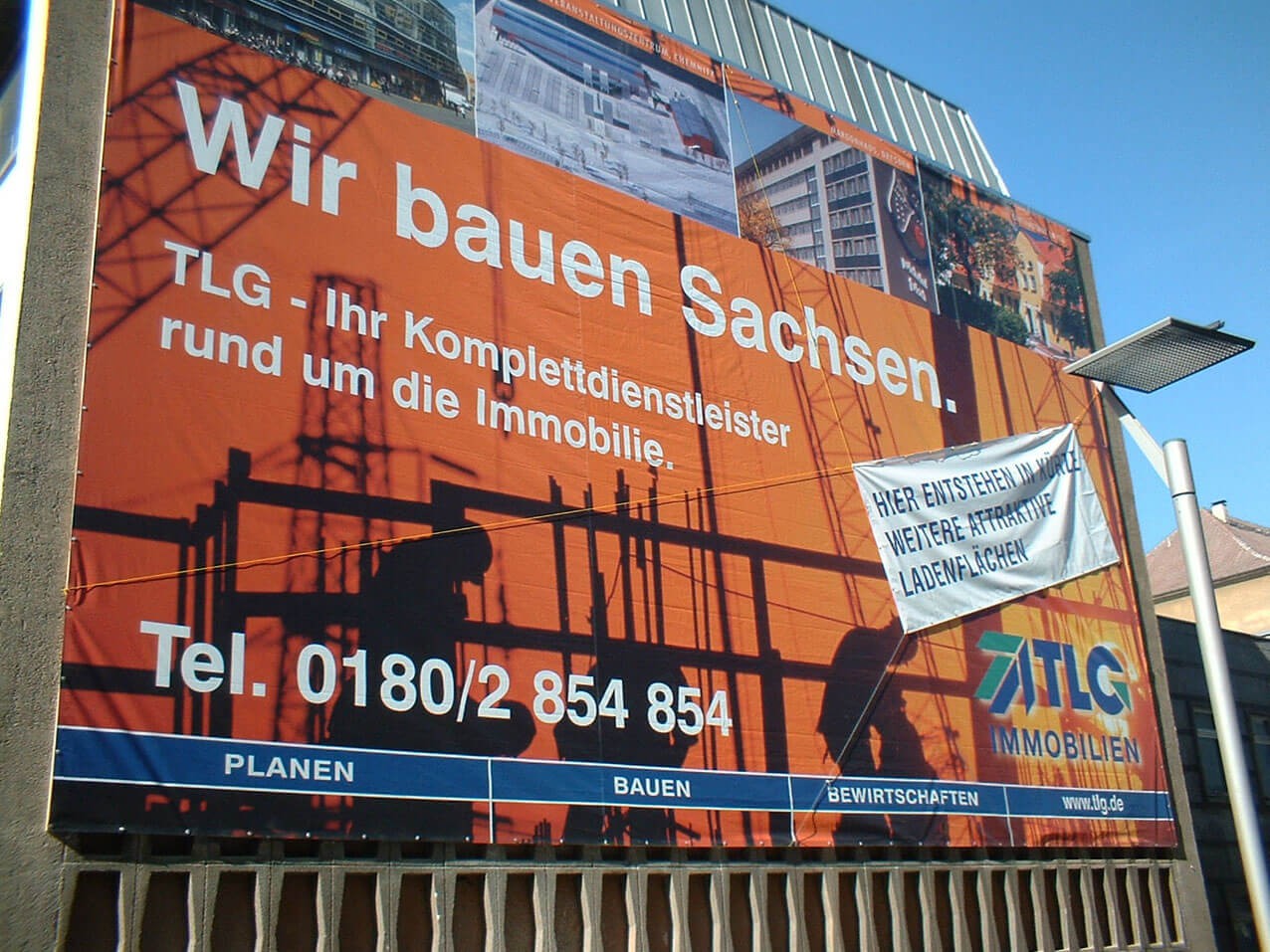 • Werbebanner, Gerüstplanen, Planendruck, XXL Druck, Digitaldruck, etc. für Bauzaun, Baugerüst, Absperrgitter, oder