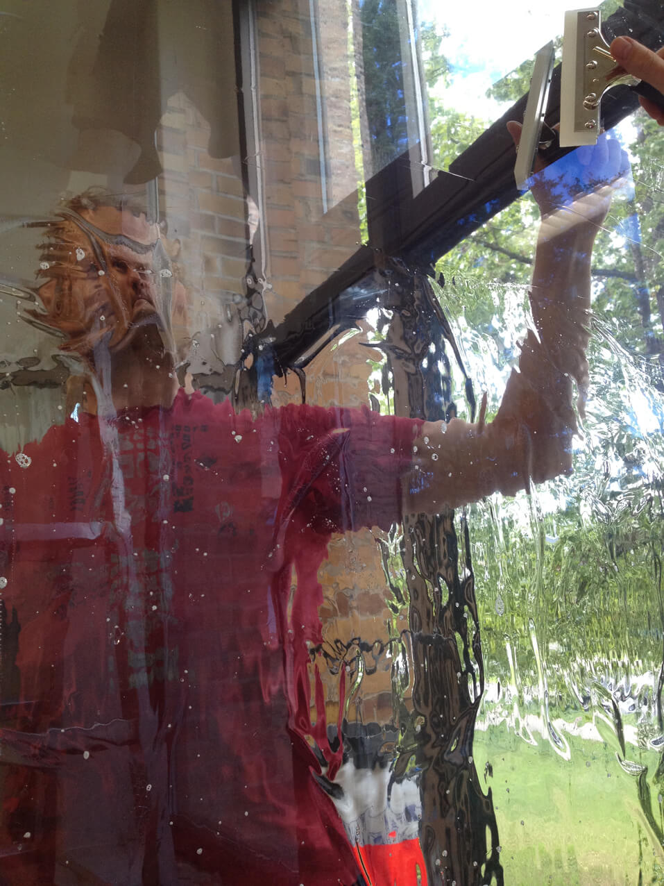 • Sonnenschutzfolien, Sichtschutzfolien, UV-Schutzfolien auf Fensterglas in Gebäuden montieren: