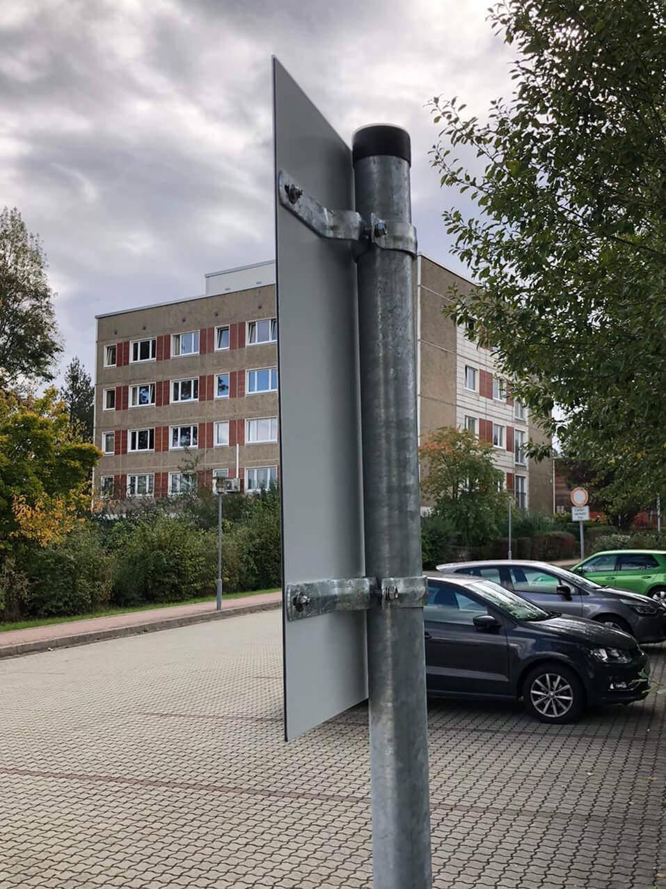 - Stahl feuerverzinkt zum Aufschrauben, verbinden vom Pfosten und Schild zur einfachen Schildmontage