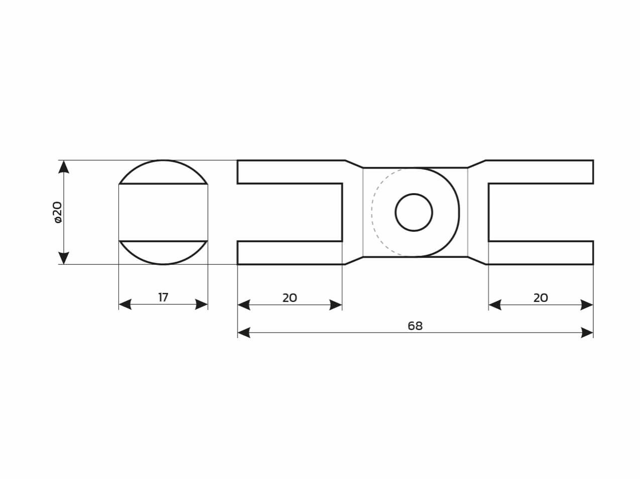 - Bemaßung Halterung, Tischklemme 68 x 17 x 20 mm (LxBxH)