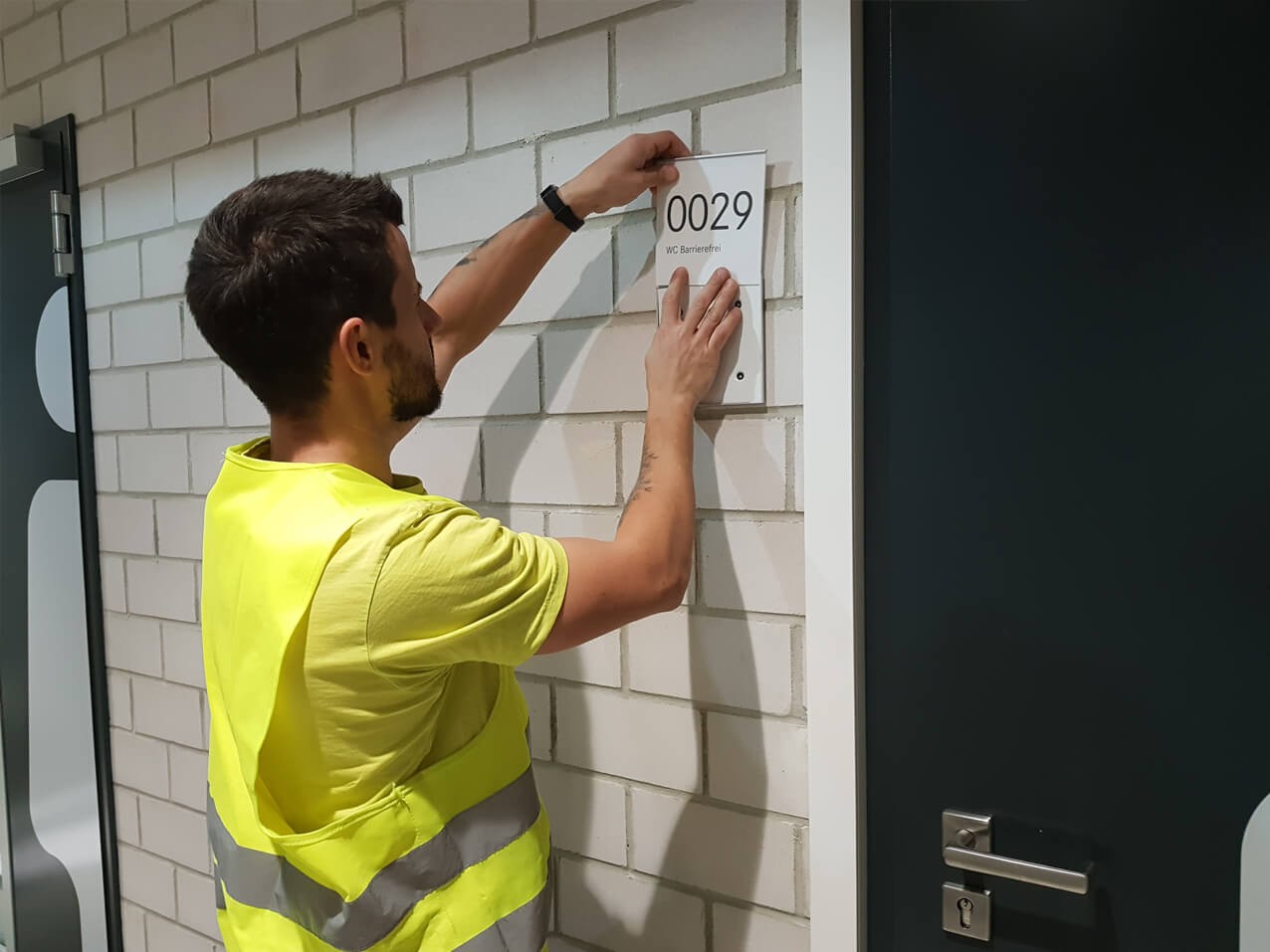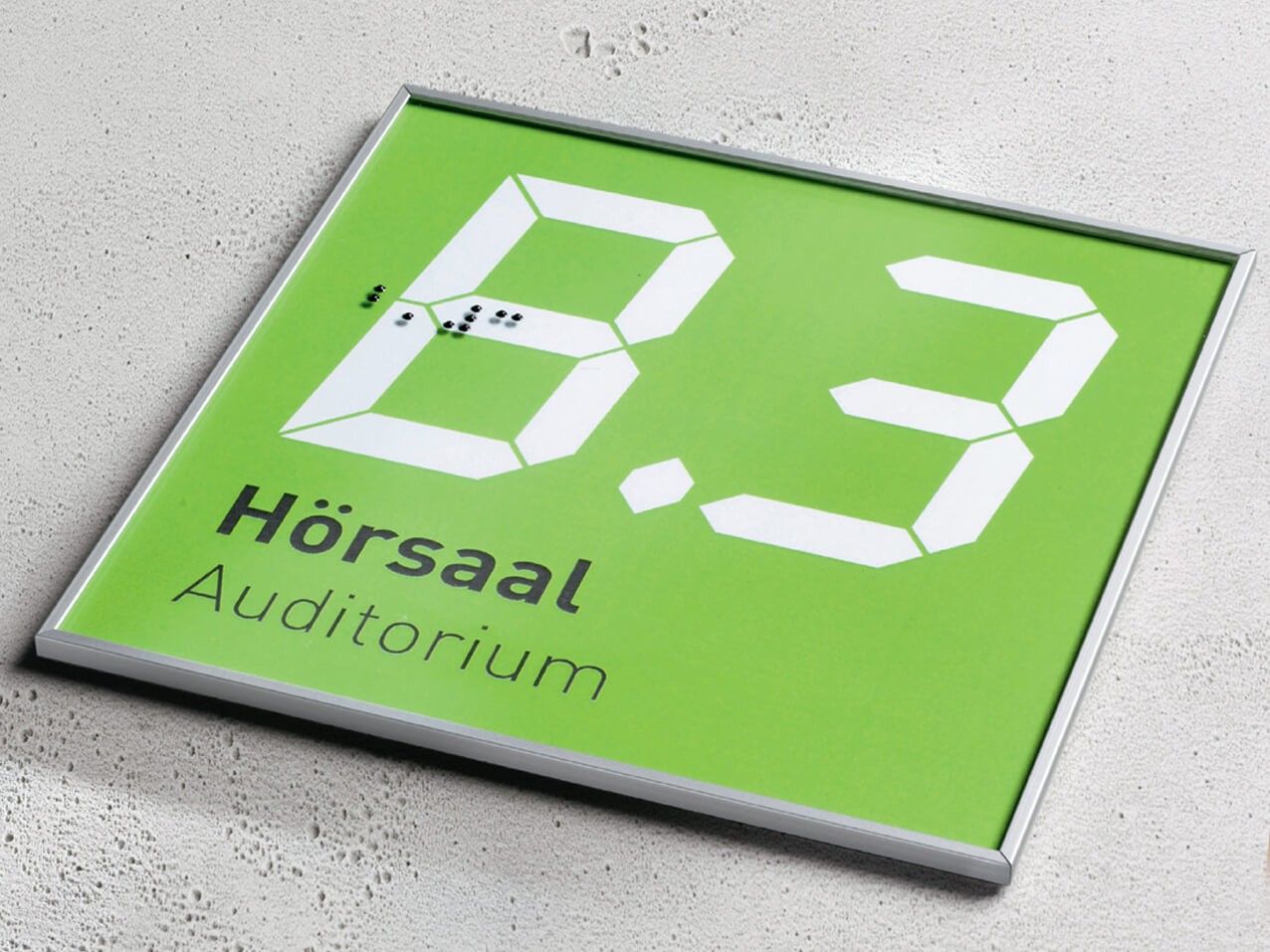 - Orientierungsschilder als Türschild mit transparente spiegelfreie Schutzfolie, 3 mm Acrylglas