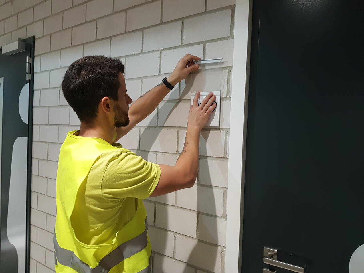 - Schildermontage mit Powerklebeband oder Schrauben an Wand, Tür, Fenster Innen (Montagezubehör nicht im Lieferumfang)