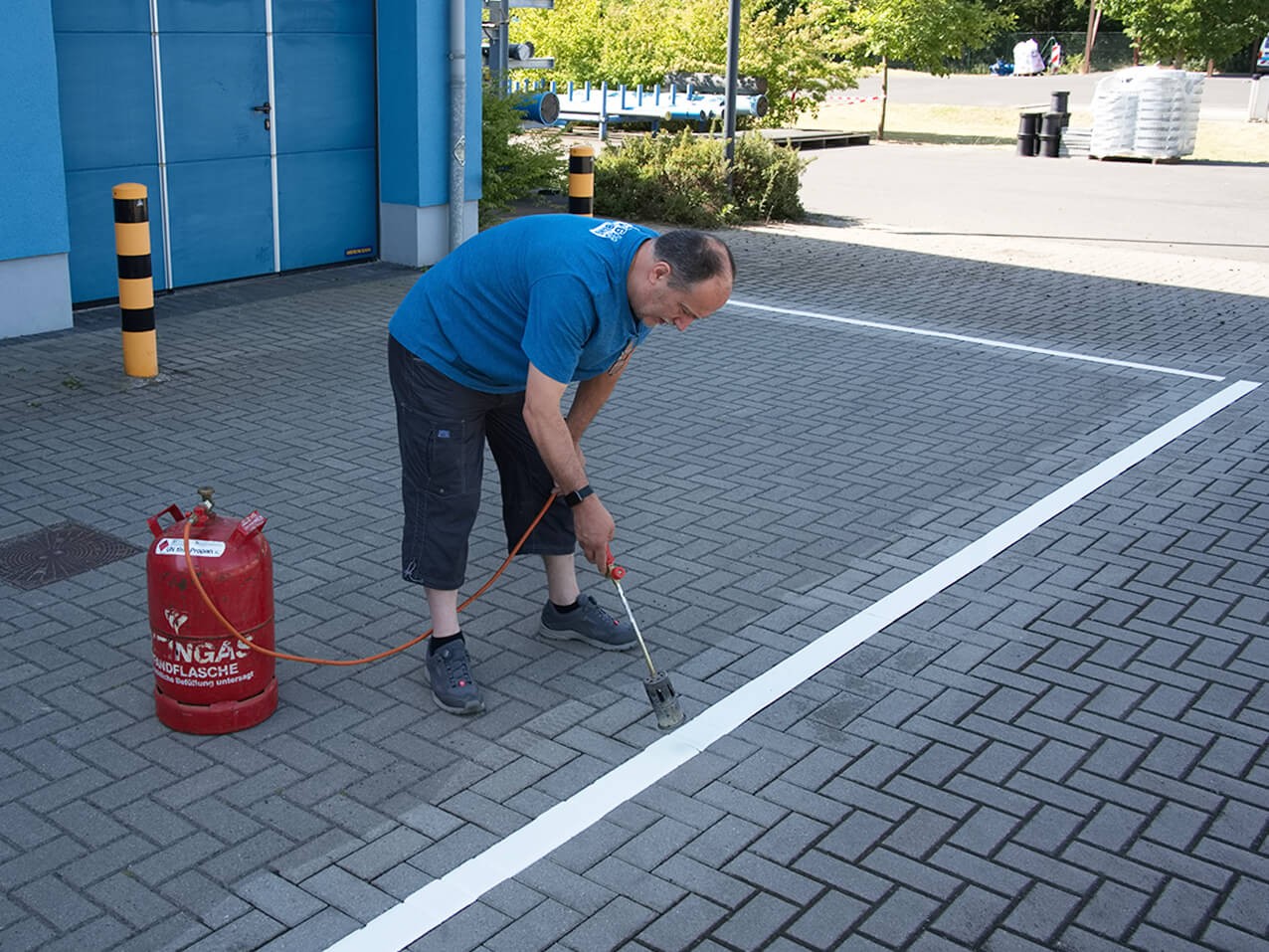 - Montage mit Gasbrenner, Besen, Kreide und Nachstreumittel, evtl. zusätzlich Primer nehmen